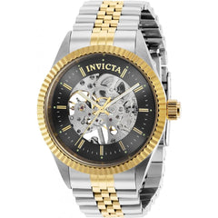 The dial is black skeleton and it features conservatively sized, index hour markers and white accents gold tone luminous index shaped hands for superior legibility. This piece has a mineral crystal for scratch resistance. Governing this fine piece is Chinese made P2650-SS mechanical movement with 17 jewels. The water resistance comes in at 50 meters. The Invicta 36439 watch is brand new in its original packaging and is backed by a 3 year manufacturer's limited warranty.