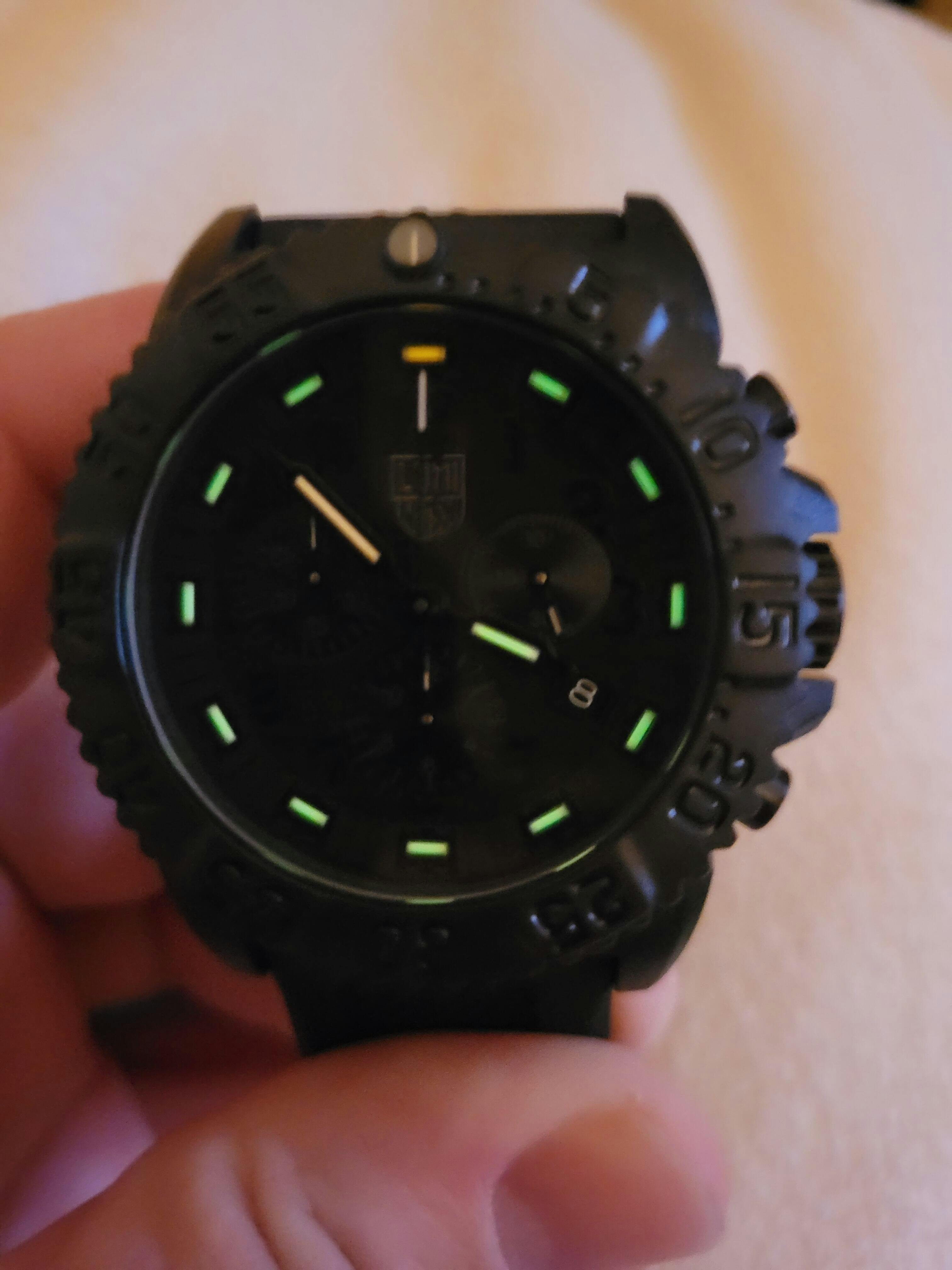Luminox 3081 Men's EVO Colormark Chronograph watch has luminous hands and markers.