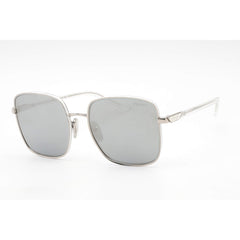 Prada 0PR 55YS 1BC02R women's sunglasses crafted from silver metal frame. These stylish sunglasses features plastic blue mirrored silver mirrored lens. It has full-rim rectangular shape frame along with a Prada logo at the temple. Prada 0PR 55YS 1BC02R sunglasses are easy to wear with adjustable nose pads for a more secure and comfortable fit. Prada 0PR 55YS 1BC02R has dimension of 57 eye wide, 19 bridge size, 135 temple length. Prada 0PR 55YS 1BC02R women's sunglasses are brand new in its original package.