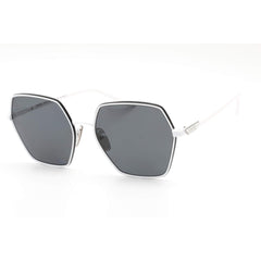 Prada 0PR 56YS 4615Z1 women's sunglasses crafted from white metal frame. These stylish sunglasses features plastic polarized dark grey polarized lens. It has full-rim geometric shape frame along with a Prada logo at the temple. Prada 0PR 56YS 4615Z1 sunglasses are easy to wear with adjustable nose pads for a more secure and comfortable fit. Prada 0PR 56YS 4615Z1 has dimension of 58 eye wide, 18 bridge size, 135 temple length. Prada 0PR 56YS 4615Z1 women's sunglasses are brand new in its original package.